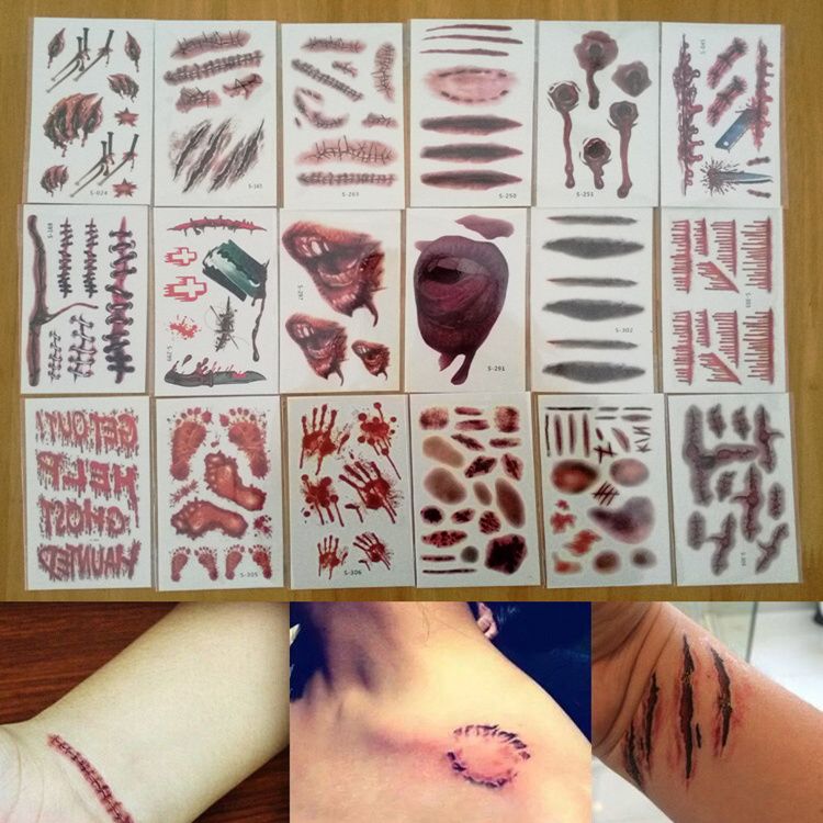 Compre Etiqueta Do Tatuagem Temporaria A Prova D Agua Halloween Terror Terror Ferida Lesao Sanguinea Realista Cicatriz Falsa Etiqueta Do Tatuagem Le129 De Zhengwy1983 303 87 Pt Dhgate Com