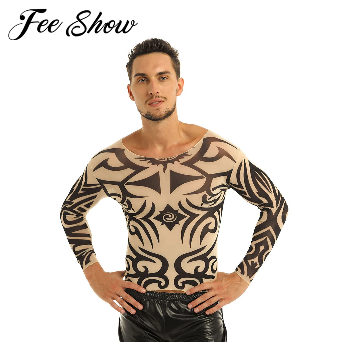 Feeshow Camiseta De Manga Longa Masculina Design De Tatuagem Falsa Elastica Manga Longa Malha Gola Redonda T Shirt Para Halloween Trajes De Carnaval Camisetas Aliexpress